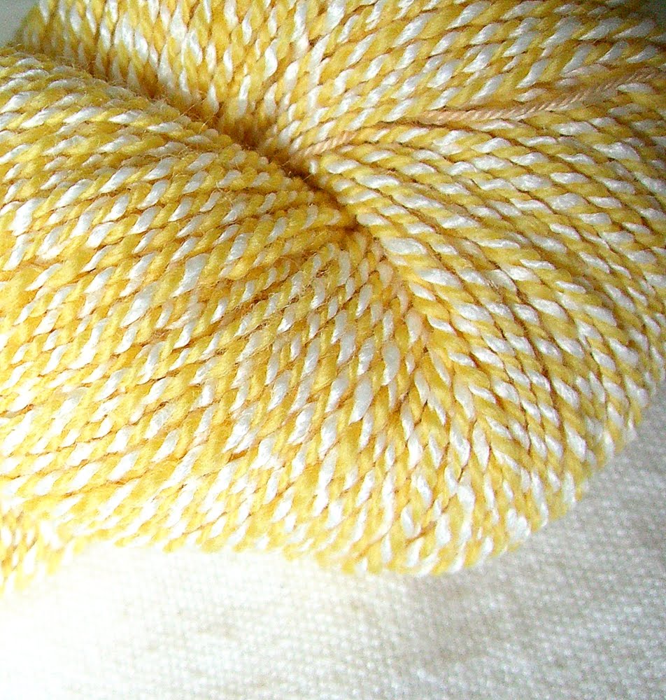 Mäkta stolt är jag över mina första 189 meter merino/bamboo. Den senare är ingen picknick att spinna om man säger så... Men vi börjar bli vänner nu, jag och bamboon. Viljan är starkare än fibrernas glatthet helt enkelt. Nu har jag pausat tillfälligt för lite skönare spinning i merino-silke.